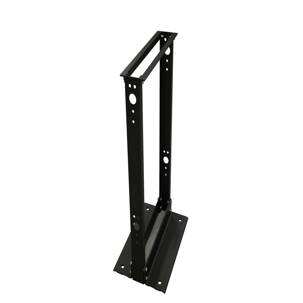 These 2-Post Floor Mount Racks offer space saving convenience for mounting of patch panels, hubs, routers, telephone equipment and more. They are constructed of quality aluminum, are tapped for #12-24 mounting screws. They have a professional looking black microfinish or natural aluminum silver finish, with numbered rack units, and are available in 3ft., 4ft. and 7ft. heights.