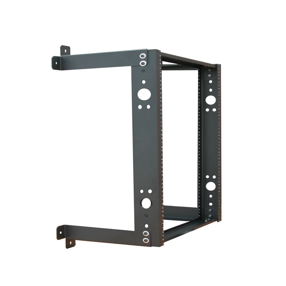 These 2-Post Wall Mount Racks offer space saving convenience for mounting of patch panels, hubs, routers, telephone equipment and more. They are constructed of quality aluminum, are tapped for #12-24 mounting screws, have a professional looking black microfinish and are available in 23″, 28″ and 40″ heights.